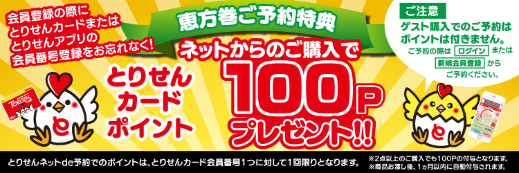 - 恵方巻予約特典のポイントを付与させて頂きました。ご利用ありがとうございました。