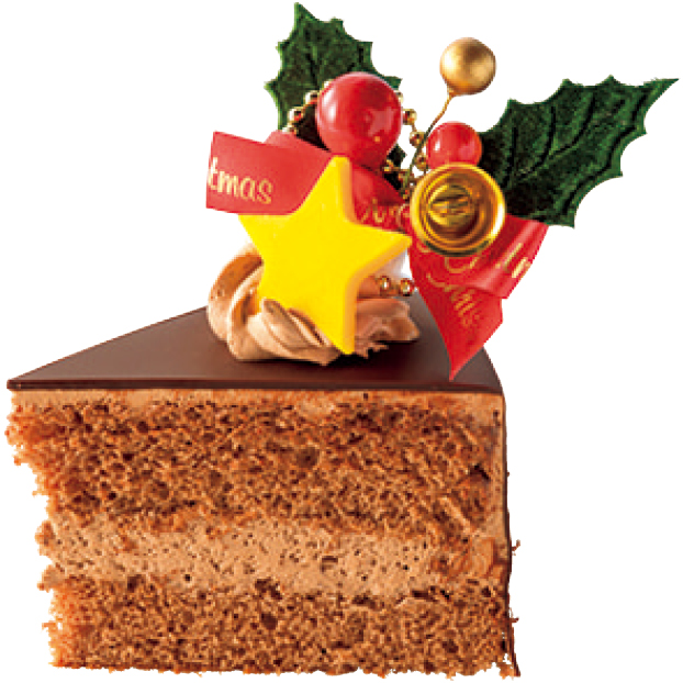 全体をパリッとした食感のチョコレートでコーティングし少しビターなスポンジ、なめらかなチョコレートクリームをトッピング、サンドしたシンプルながら奥深い味わいのケーキです。