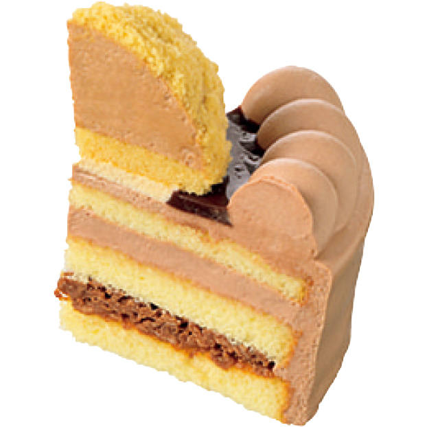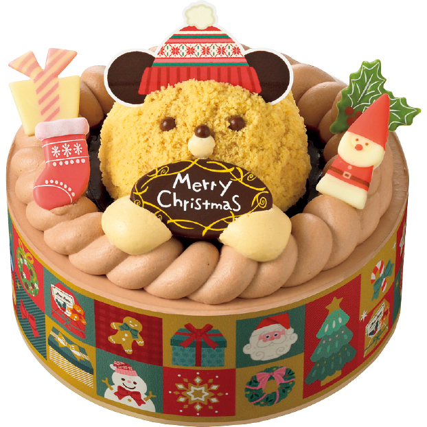 クリスマスプレゼントのくまのぬいぐるみをイメージ。ミルクチョコクリームとスポンジ、キャラメルクリームとキャラメルスポンジで仕上げた、優しい味わいのデコレーションケーキです。