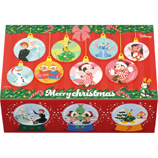 「ミッキー&フレンズ」、「アナと雪の女王」、「リロ&スティッチ」のキャラクターをイメージした、クリスマス限定のプチケーキ詰め合わせ。