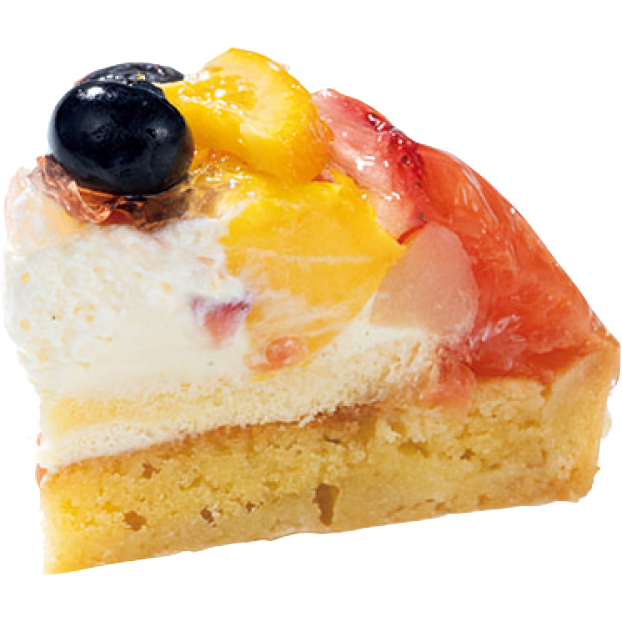サクッと香ばしく焼き上げたタルトとアーモンド生地に、カスタード風味のクリームを絞り、色とりどりの7種類のフルーツをふんだんにトッピングしました。