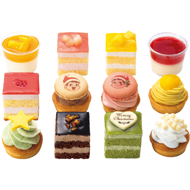 12種類のプチサイズのケーキを一度に楽しめるクリスマスパーティに最適なアソートケーキ。タルト、四角いケーキ、カップデザート等、色々な品目のケーキをプチサイズで少しずつ楽しめます。