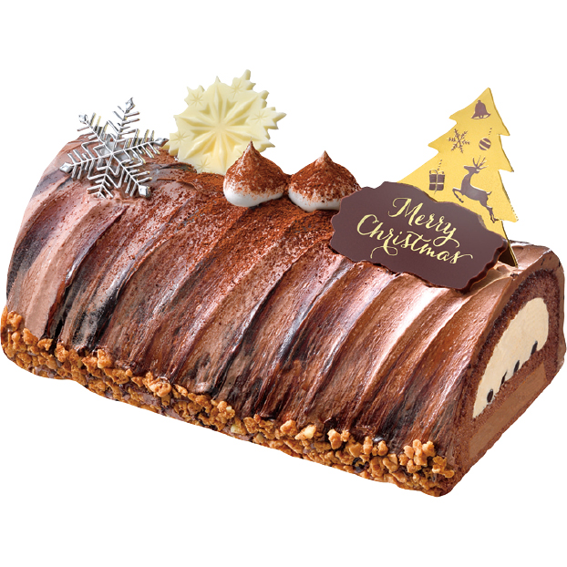 ココアスポンジにキャラメルクリームとガナッシュクリームをサンドしたブッシュ・ド・ノエルです。