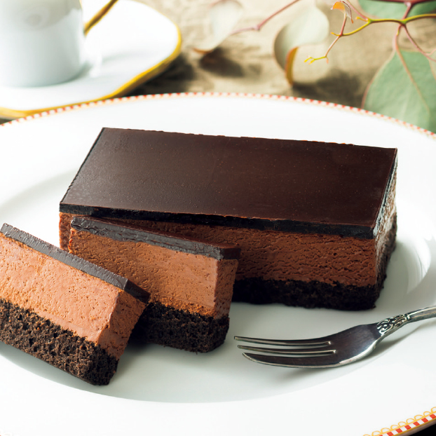 ほろ苦いココアスポンジにベルギー産チョコレートを配合した濃厚でなめらかなムースを重ねました。