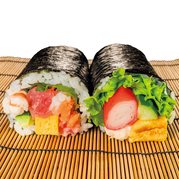 具材 まぐろ・ねぎとろ・海老・いか・サーモン・玉子・きゅうり・大葉/カニカマ・玉子・ツナマヨ・きゅうり・サンチュ