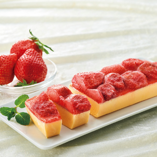 カスタードをイメージした土台に、福岡県産あまおう苺のコンポートをトッピング。